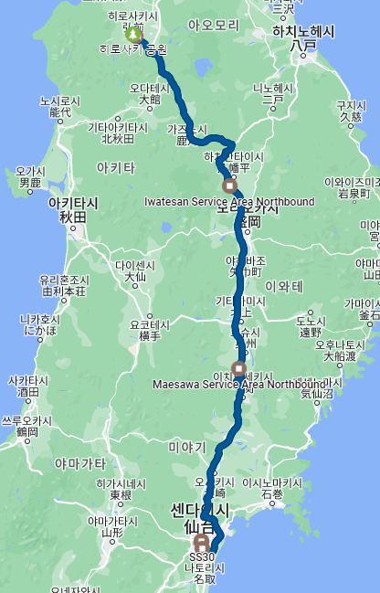 오늘 목적지인 히로사키(아오모리) 쪽에 눈이 엄청와서 국도 대부분이 통제상태입니다