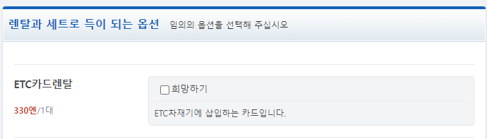 ETC 카드 렌탈을 꼭 하시기 바랍니다. (ETC 차재기 탑재 옵션과는 다름!!)